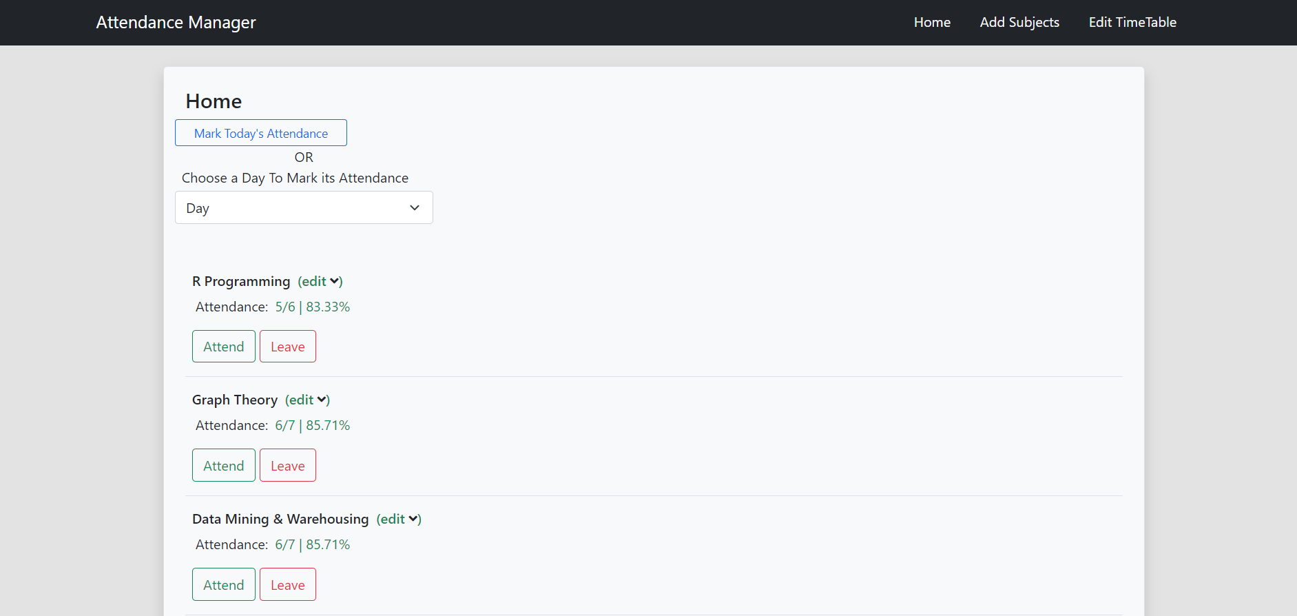 Built a web app that helps students keep a track of their regular attendance and manage their schedule. The app uses Local Storage of the browser using JavaScript to store the attendance. Students can upload their time table and can update the update attendance according to the day schedule.